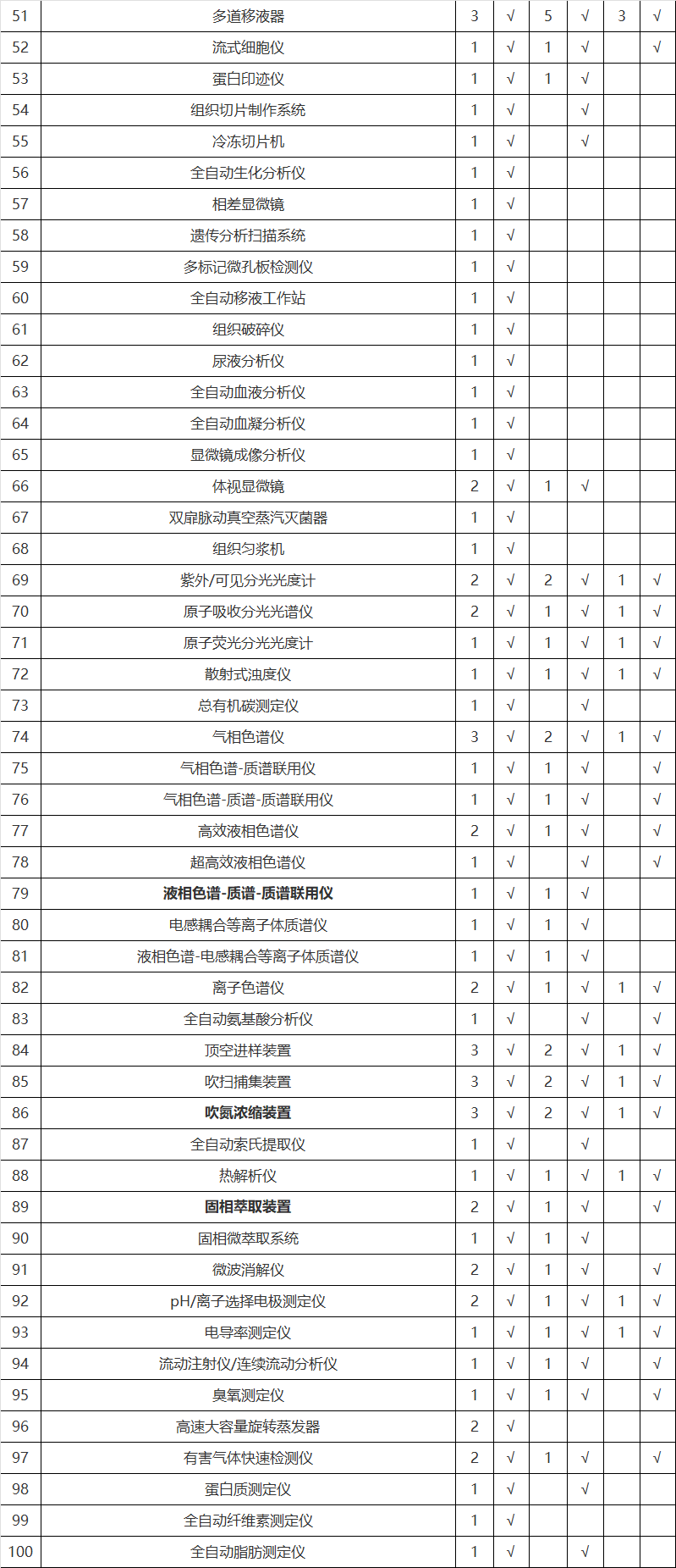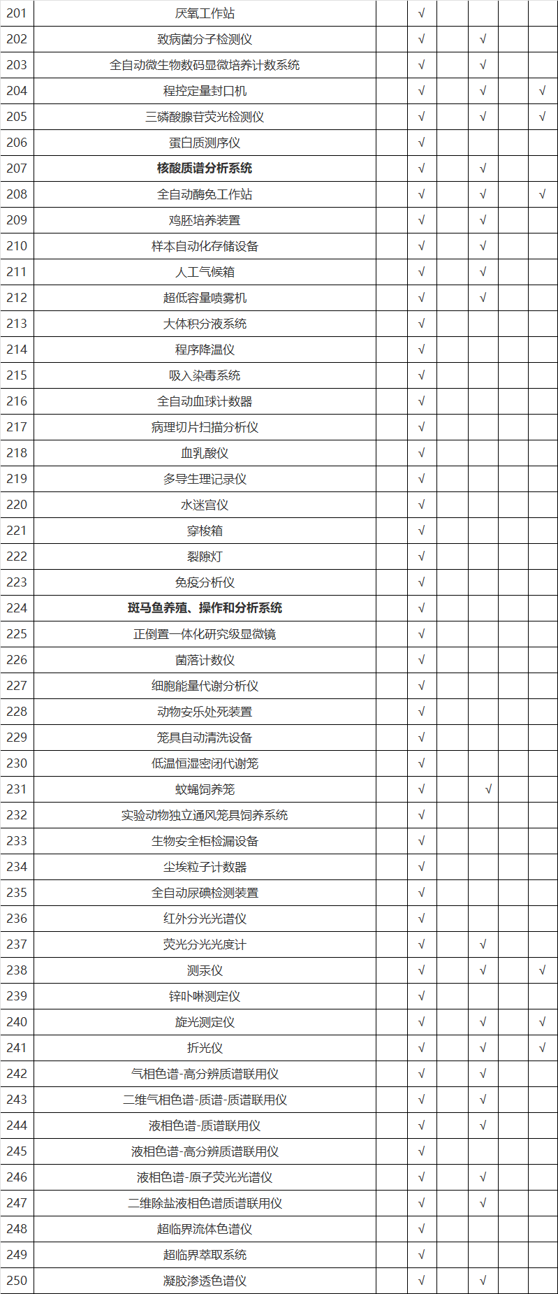 附录1(表中加粗标注的仪器设备,为莱奥可供应的产品品类)