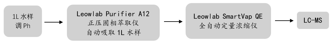 2. 活化柱子后,1L水样通过自动吸取,采用Leowlab Purifier A12正压固相萃取仪净化;