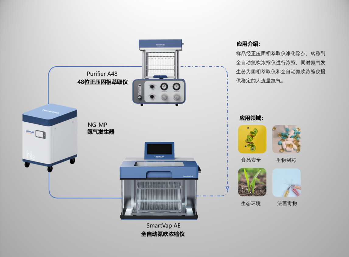 | 6 | 多环芳烃 | GB 5009.265-2021 | 莱奥48位正压固相萃取仪、莱奥48位全自动氮吹浓缩仪、莱奥氮吹用氮气发生器 |