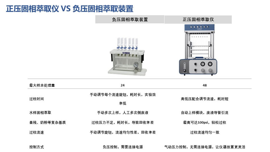 5、标准提到的奶粉、油脂含量高的肉类、粘稠的蜂蜡等制品属于复杂类基质,需要过柱压力较大,选用莱奥48位正压固相萃取仪,针对以上复杂基质,压力相比真空泵负压装置,最高可达100psi,可以轻松快速过柱。
