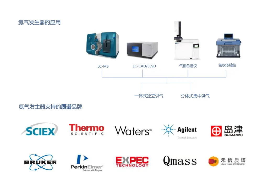 用于液质联用仪LC-MS的氮气发生器是我们最畅销的产品。莱奥的氮气发生器已为十几个品牌的液质联用仪提供过稳定高纯度的氮气,包括但不限于SCIEX、Thermofisher、Agilent、Waters、Shimadzu、Bruker、PerkinElmer、禾信、谱育、安图生物、中元汇吉、安益谱、深圳禾越、杭州质普。