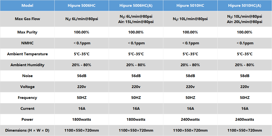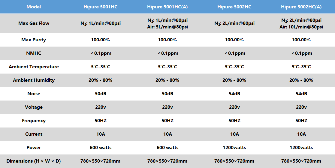 Hipure氮气发生器专为高纯氮气需求的仪器设计,采用变压吸附碳分子筛技术,其产生的高纯氮气可为气相色谱提供载气、尾吹气,产生的空气为气相色谱提供助燃气。
