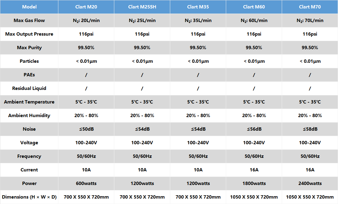 NG-M系列氮气发生器采用超细化中空纤维膜分离技术,作为精心设计的可靠性集成产品,有广泛的适用性,可为Waters、Thermo、Agilent、Shimadzu、Bruker、谱育、中元汇吉和Advion等品牌液质联用仪提供高纯氮气解决方案。