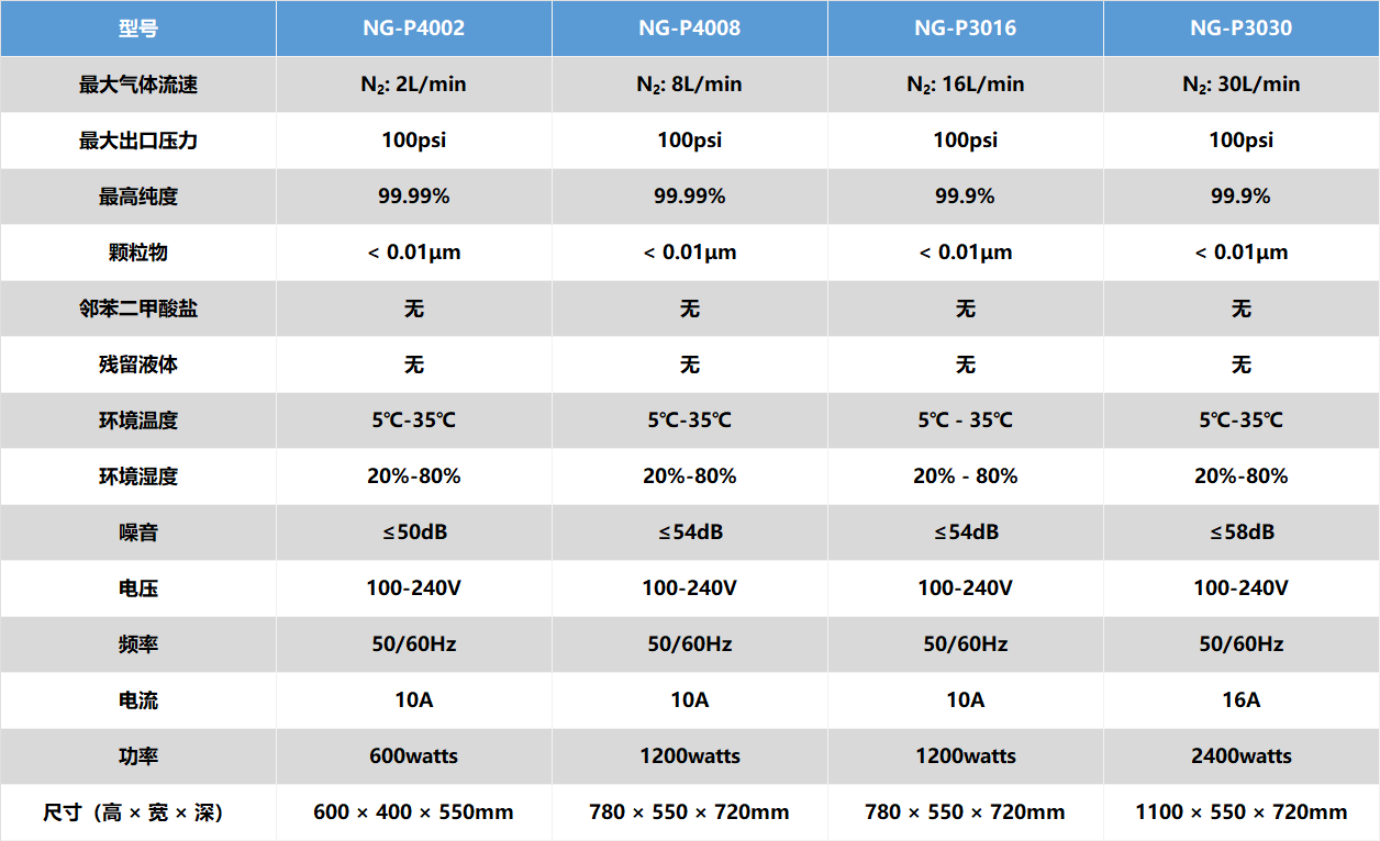 NG-P系列氮气发生器采用变压吸附碳分子筛分离技术,可产生高纯度的氮气。