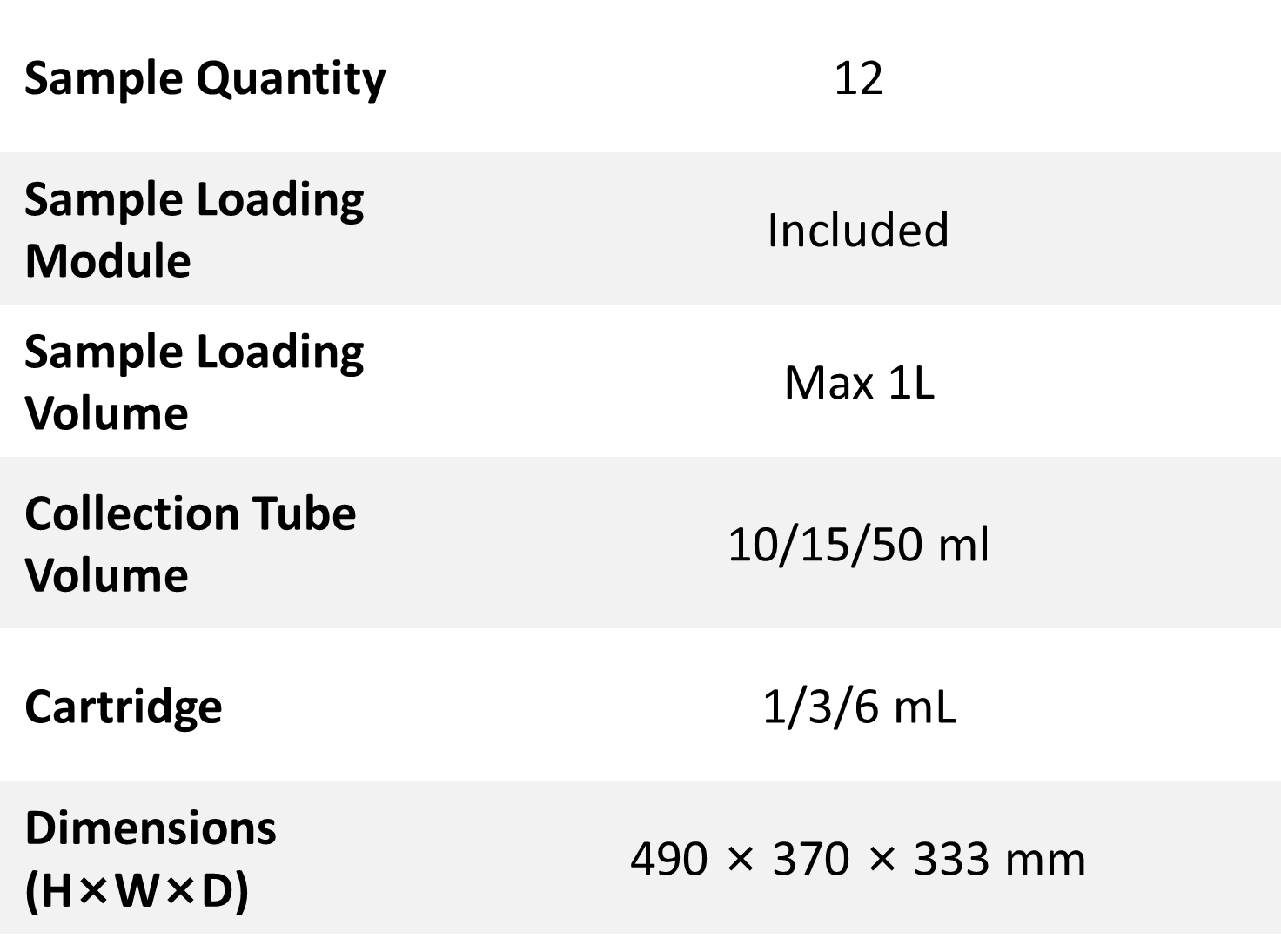 Purifier A12适用于大体积水样的高通量萃取净化,可完成活化、上样、淋洗和洗脱的SPE全部流程。相比负压装置可提供更高压力(最高 100psi),且流速可控,有极佳的重复性和回收率,深受实验人员喜爱。